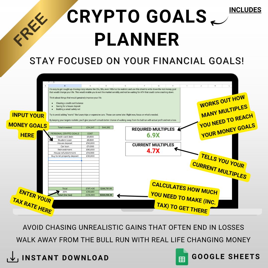 ✔ A bonus crypto goals sheet to work out how much you really need to hit your money goals
